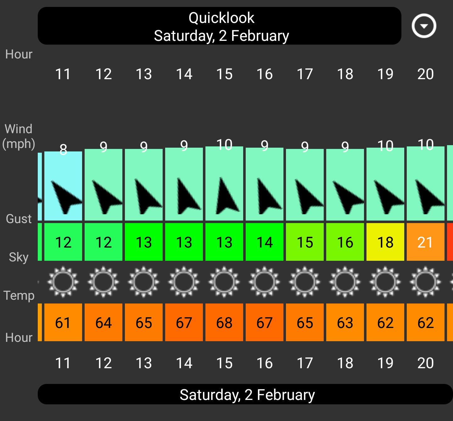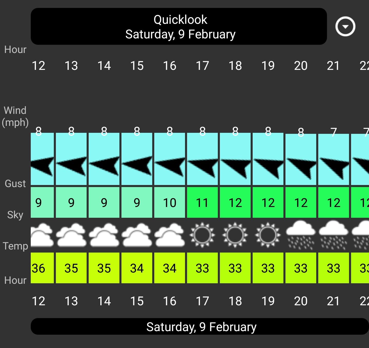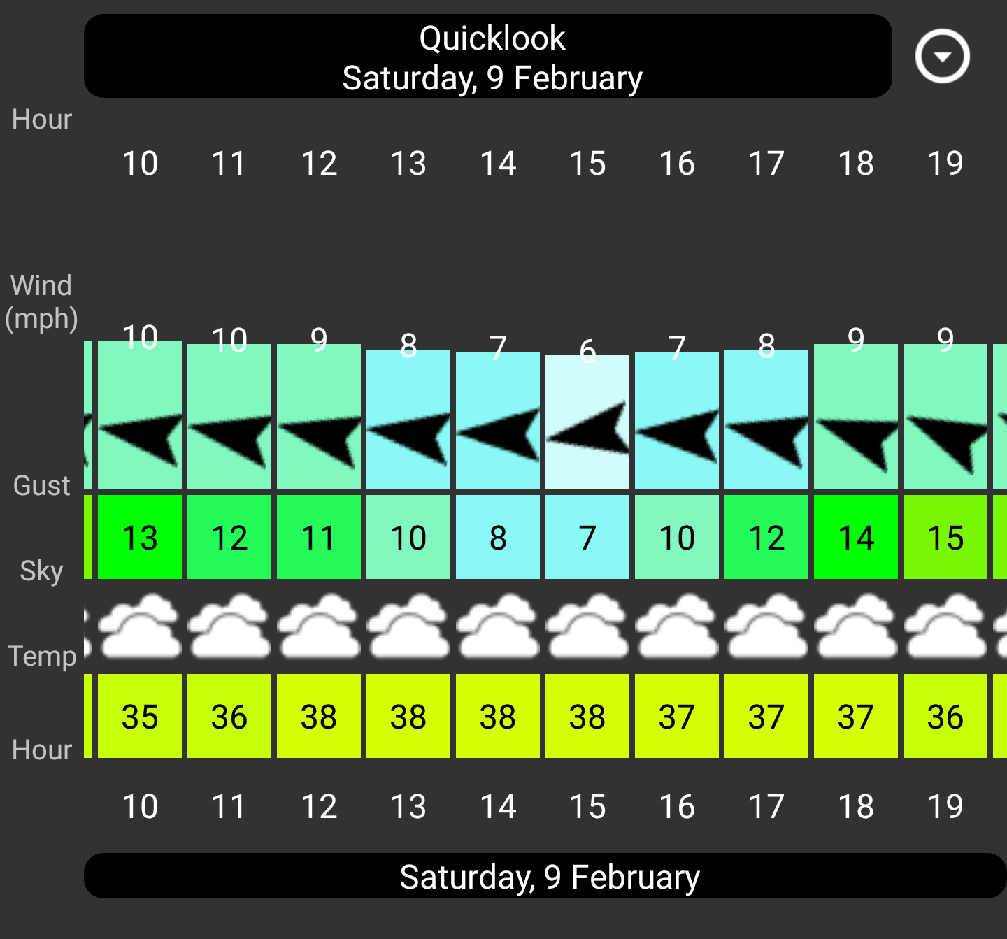 It shows 10mph 34 degrees water 46 overcast is a go. Or 11mph 33 degrees water 46 sunny is a go. All of the scenarios pass on the calculator. Rain would push it over so we have to go and see, i see a 20 percent chance at 2pm but thats it. Posted By: James Freedman