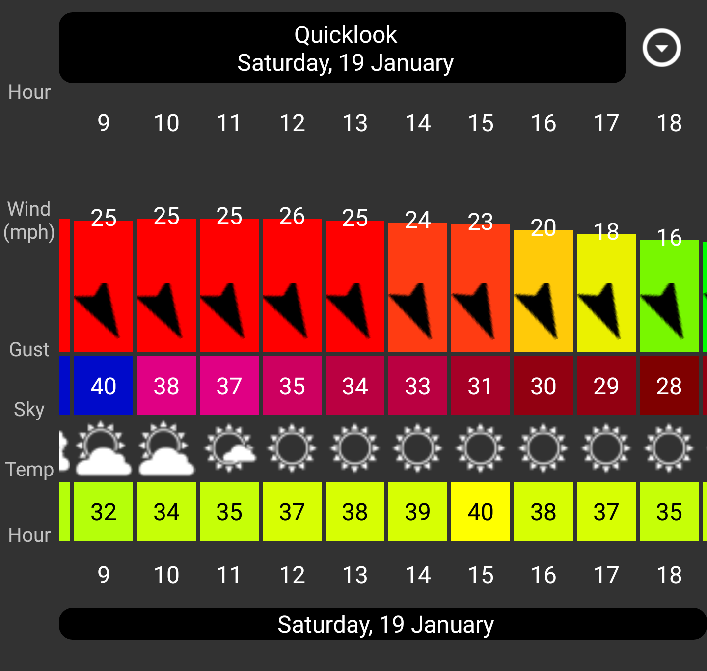 Tomorrows forecast is for 30 plus. We either have too much or too little wind. Races will be cancelled tomorrow. Posted By: James Freedman